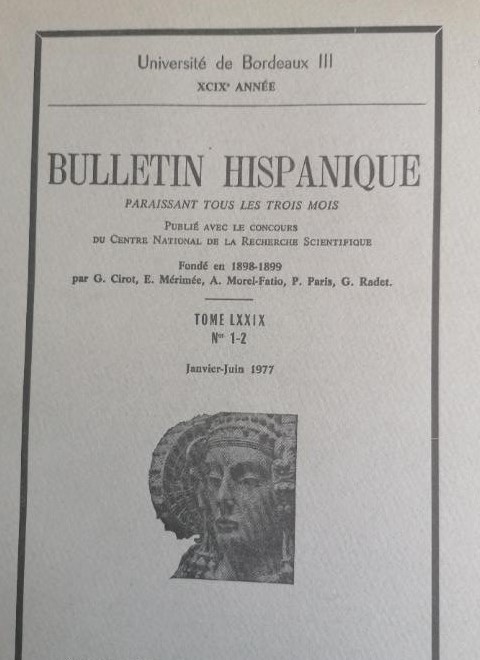 Bulletin Hispanique. Université de Bordeaux Paraissant tous les trois mois. 1977 LXXIX nº 1-2