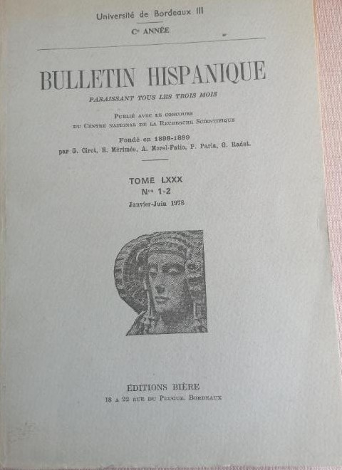 Bulletin Hispanique. Université de Bordeaux Paraissant tous les trois mois.1978 Tome LXXX Nº 1-2