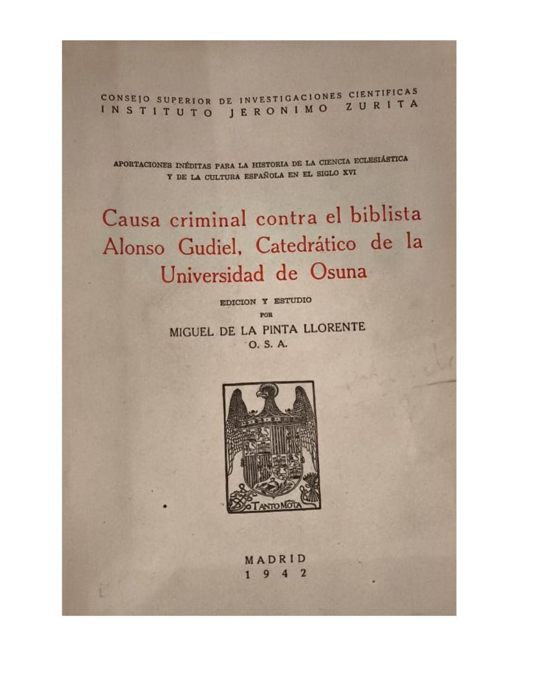 Causa criminal contra el biblista Alonso Gudiel. Catedrático de la Universidad de Osuna