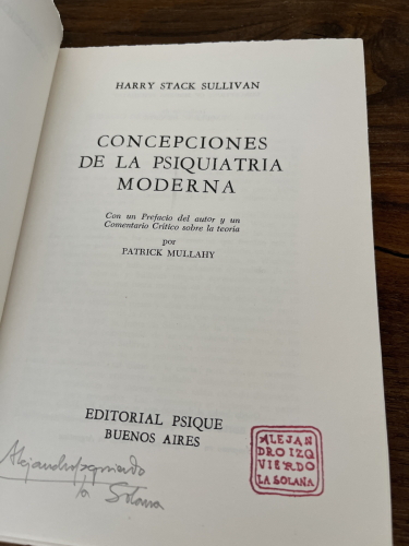 CONCEPCIONES DE LA PSIQUIATRÍA MODERNA. H. STACK SULLIVAN. Editorial Psique, Buenos Aires,