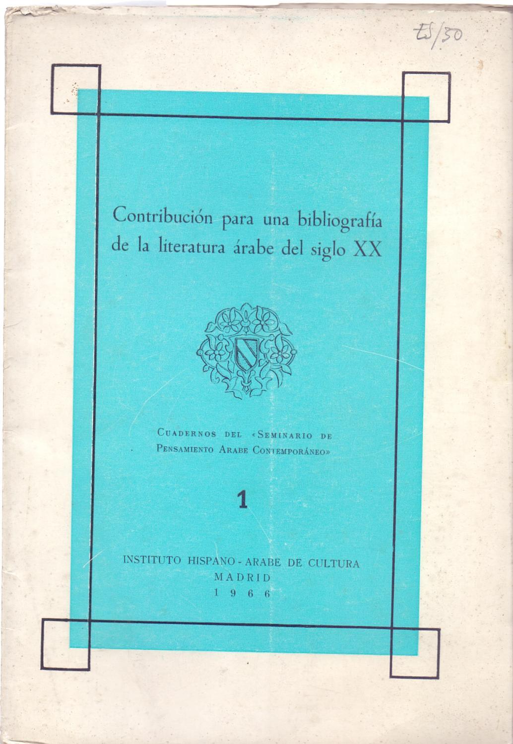 CONTRIBUCION PARA UNA BIBLIOGRAFIA DE LA LITERATURA ARABE DEL SIGLO XX