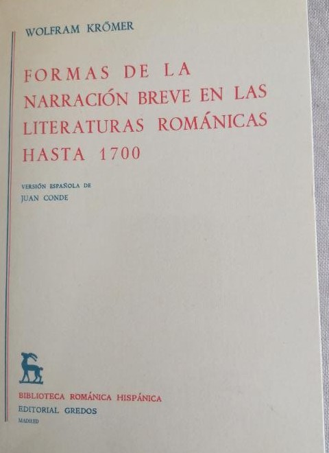 Formas de la narración breve en las literaturas románicas hasta 1700. Wolfram Krömer GREDOS 1979