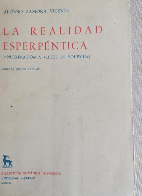 La realidad esperpéntica. Zamora Vicente, Alonso. Ed. Gredos. Madrid 1974 220pp