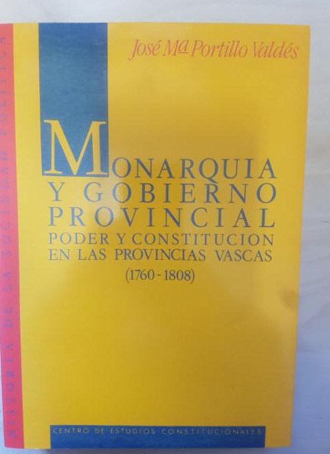 Monarquía y gobierno provincial.: Poder y Constitución en las provincias vascas (1760-1808). Portillo Valdés. Centro de Estudios Constitucionales. Historia de la sociedad política. Madrid 1991
