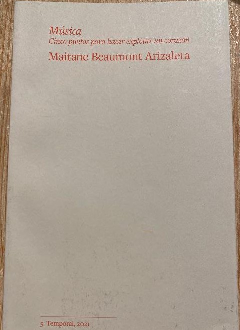 MÚSICA, CINCO PUNTOS PARA HACER EXPLOTAR UN CORAZÓN. MAITANE BEAUMONT ARIZALETA. 2021, TEMPORAL.